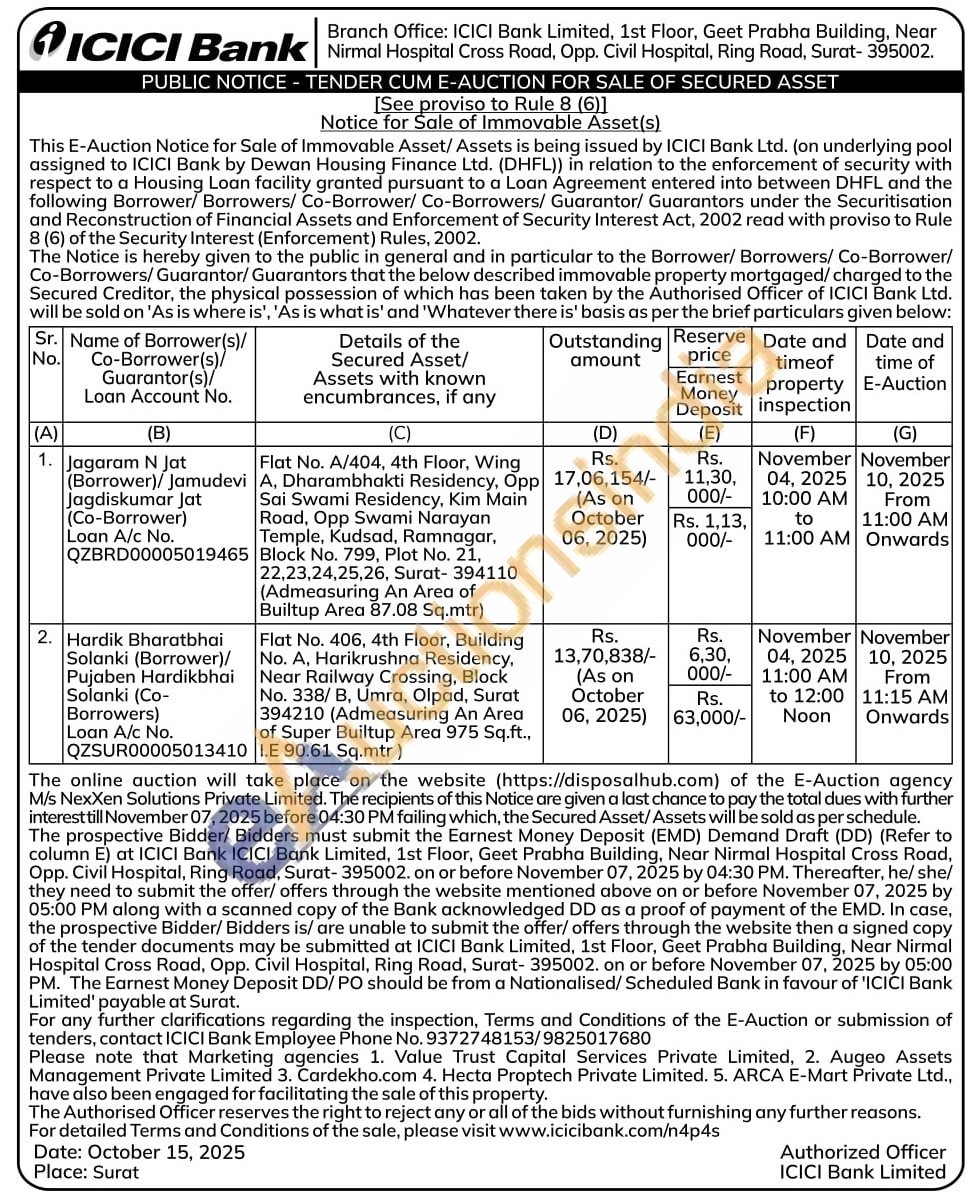 Flat No. 406, 4th Floor, Building No. A, Harikrushna Residency, Near Railway Crossing, Block No. 338/ B, Umra, Olpad, Surat 394210 (Admeasuring An Area of Super Builtup Area 975 Sq.ft., Ι.Ε 90.61 Sq.mtr)