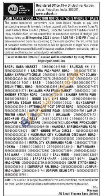 AU Small Finance Bank Gold Auctions Auction in Jaipur
