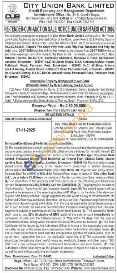 Contact Telephone No. 0484-2988850, Cell No.9349287690