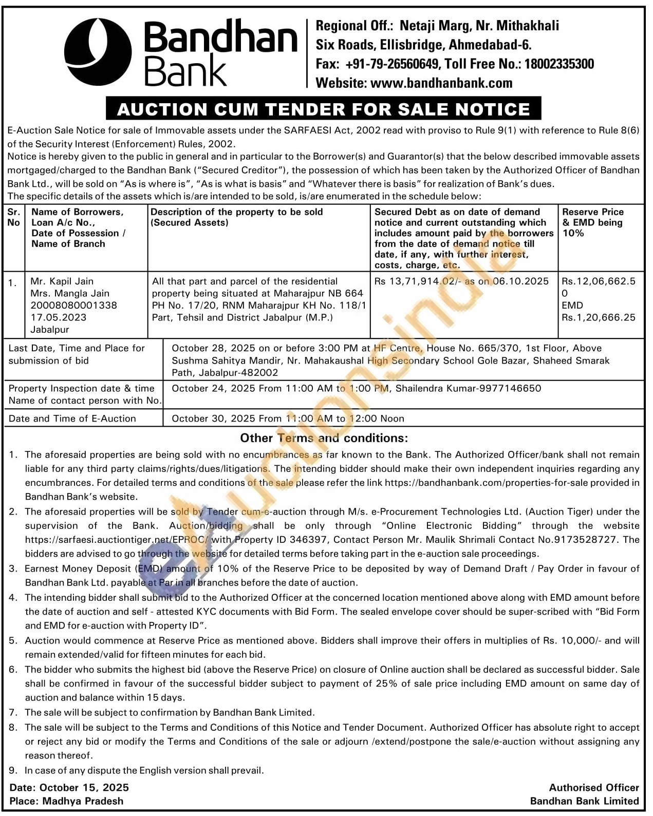 All that part and parcel of the residential property being situated at Maharajpur NB 664 PH No. 17/20, RNM Maharajpur KH No. 118/1 Part, Tehsil and District Jabalpur (M.P)
