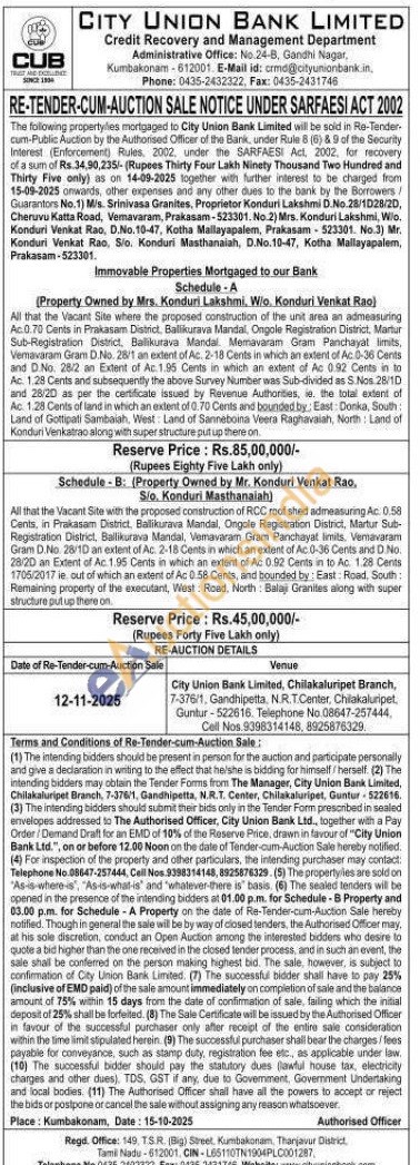 All that the Vacant Site where the proposed construction of the unit area an admeasuring Ac.0.70 Cents in Prakasam District, Ballkurava Mandal, Ongole Registration District, Martur Sub-Registration District, Balikurava Mandal. Memavaram Gram Panchayat limits, Vemavaram Gram D.No. 28/1 an extent of Ac. 2-18 Cents in which an extent of Ac 0-36 Cents and D.No. 26/2 an Extent of Ac. 1.95 Cents in which an extent of Ac 0.92 Cents in to Ac. 1.28 Cents and subsequently the above Survey Number was Sub-divided as S Nos. 28/10 and 28/20 as per the certificate issued by Revenue Authorities, ie, the total extent of Ac. 1.28 Cents of land in which an extent of 0.70 Cents and bounded by: East: Donka, South: Land of Gottipati Sambaiah, West Land of Sannaboina Veera Raghavaiah, North: Land of Konduri Venkatrao along with super structure put up there on.