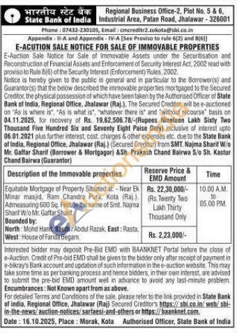 Equitabile Mortgage of Property Situated at Near Ek Minar masjid, Ram Chandra Pura, Kota (Raj) Admeasuring 600 Sq. Feet. In the name of Smt. Nama Shant W/o Mr. Gaftar SharitBounded by: North: Mohd Hanif, South: Abdul Razak, East: Rasta, West House of Farida Begam