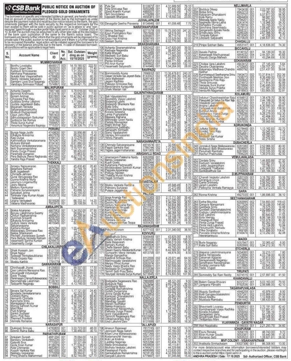 CSB Bank Gold Auctions Auction in Konaseema