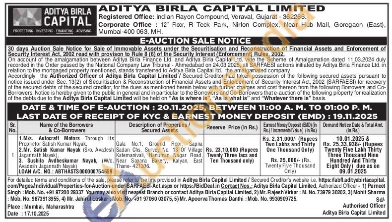 Authorized Officer - 1) Parneet Singh: Mobile No : +91 9720029337