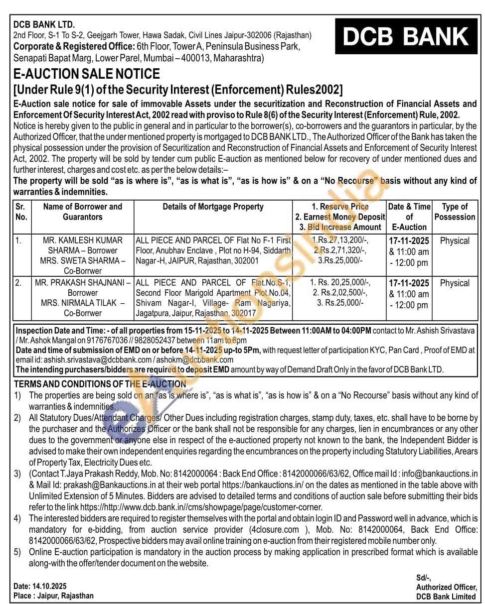 ALL PIECE AND PARCEL OF Flat No F-1 First Floor, Anubhav Enclave, Plot no H-94, Siddarth Nagar-H, JAIPUR, Rajasthan, 302001