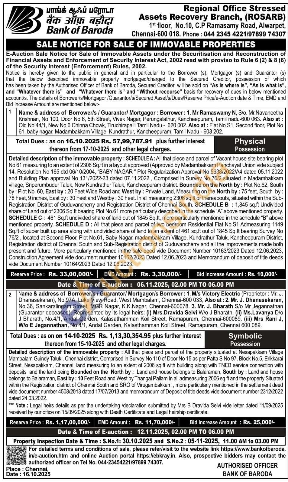 Authorized officer Telephon No : 04423454221 / 9789974307
