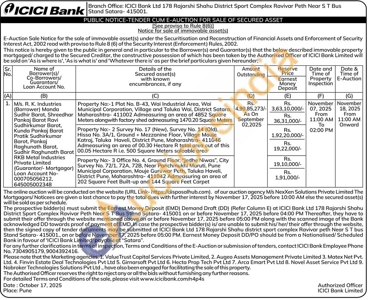 Property No:- 2 Survey No. 17 (New), Survey No. 14 (Old), Hissa No. 3A/1, Ground + Mezzanine Floor, Village Mouje Katraj, Taluka Haveli, District Pune, Maharashtra-411046 Admeasuring an area of 00.30 Hectare R total area out of this 00.05 Hectare R i.e. 500 Square Meters saleable area