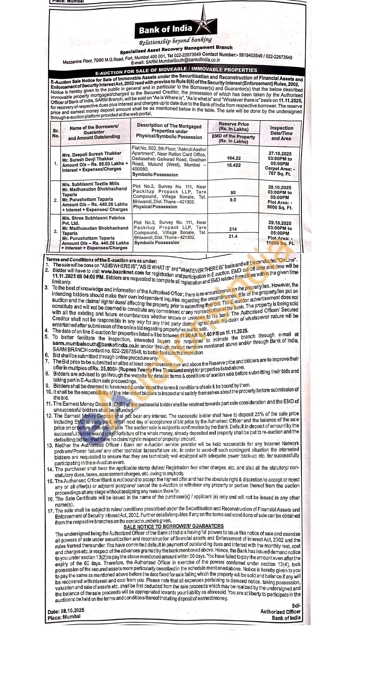 Flat No. 502, 5th Floor, "Aakruti Aashvi Apartment", Near Ration Card Office, Dadasaheb Gaikwad Road, Goathan Road, Mulund (West), Mumbai 400080. Symbolic Possession