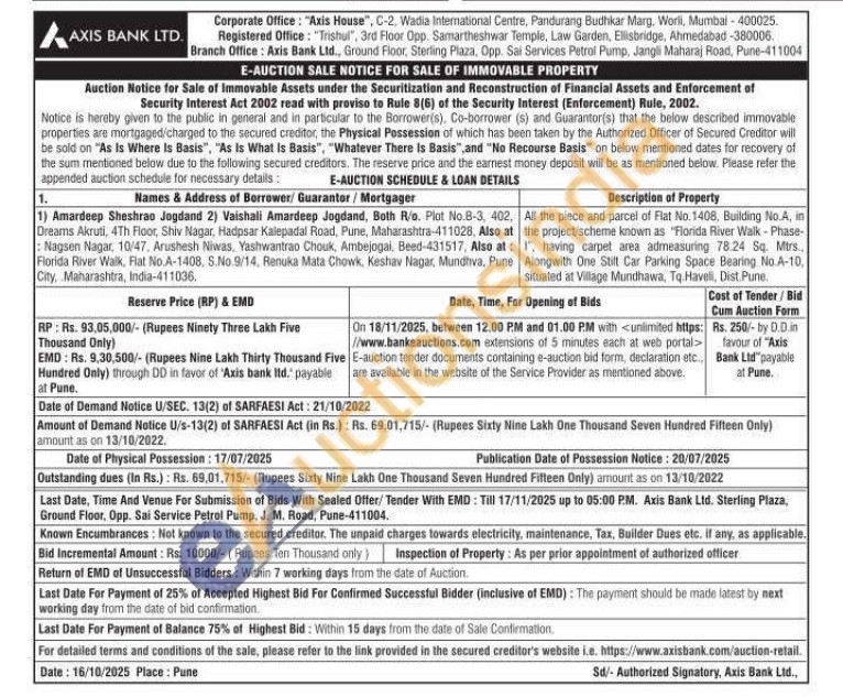 All the piece and parcel of Flat No.1408, Building No.A, in the project/scheme known as "Florida River Walk-Phase-I, having carpet area admeasuring 78.24 Sq. Mtrs.. Alongwith One Stilt Car Parking Space Bearing No.A-10, situated at Village Mundhawa, Tq. Haveli, Dist. Pune