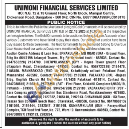 Unimoni Financial Services Limited Gold Auctions Auction in Ernakulam
