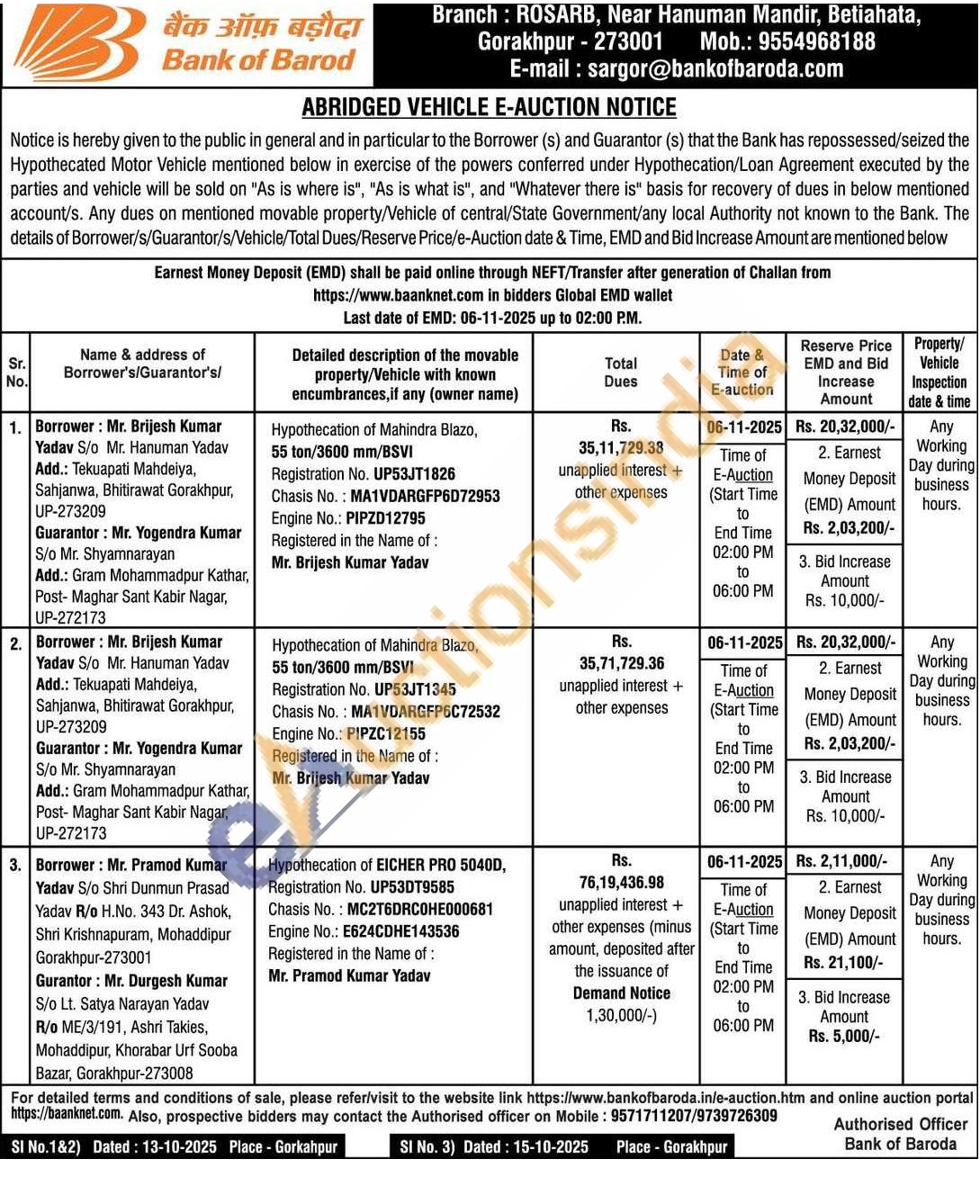 Hypothecation of Mahindra Blazo, 55 ton/3600 mm/BSVI