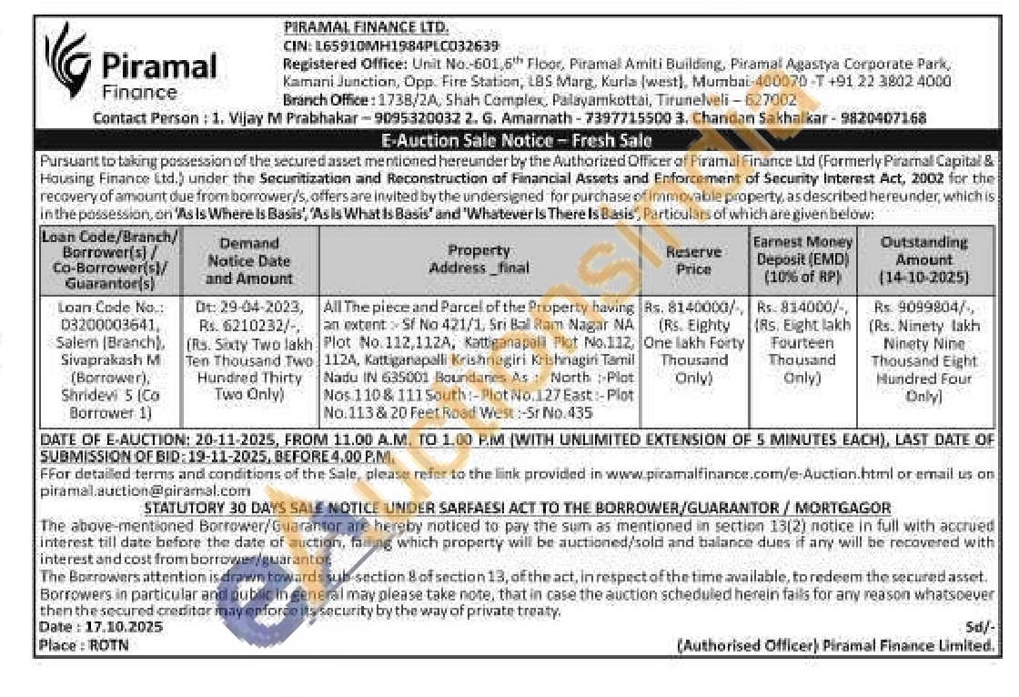 All the piece and Parcel of the Property having an extent Sf No 421/1, Sri Bal Ram Nagar NA Plot No. 112,112A, Kattiganapalli Plot No.112, 112A, Kattiganapalli Krishnagiri Krishnagiri Tamil Nadu IN 635001 Boundaries As: North Plat Nos 1108 111 South:-Plot No.127 East:-Plot No.113 & 20 Feet Road West:-Sr No.435