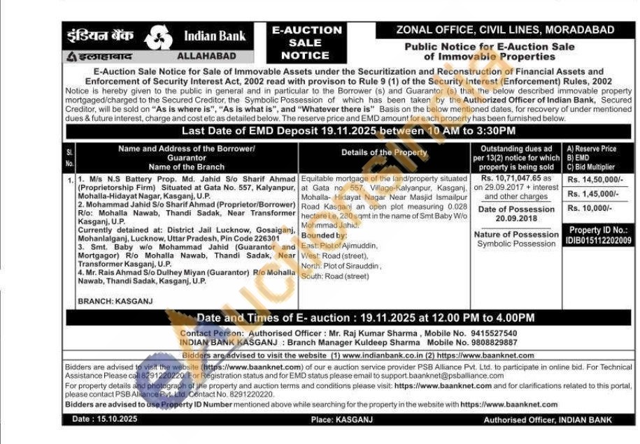 Authorised Officer: Mr. Raj Kumar Sharma, Mobile No. 9415527540