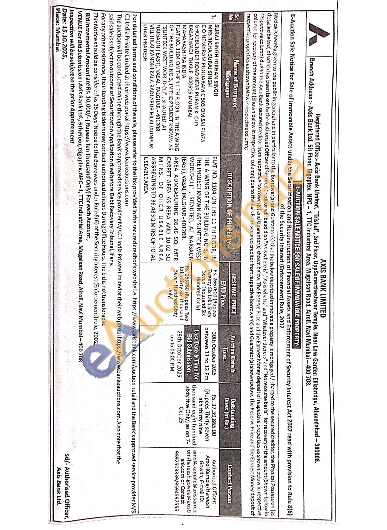 Authorized Officer 9892503839/9594597555