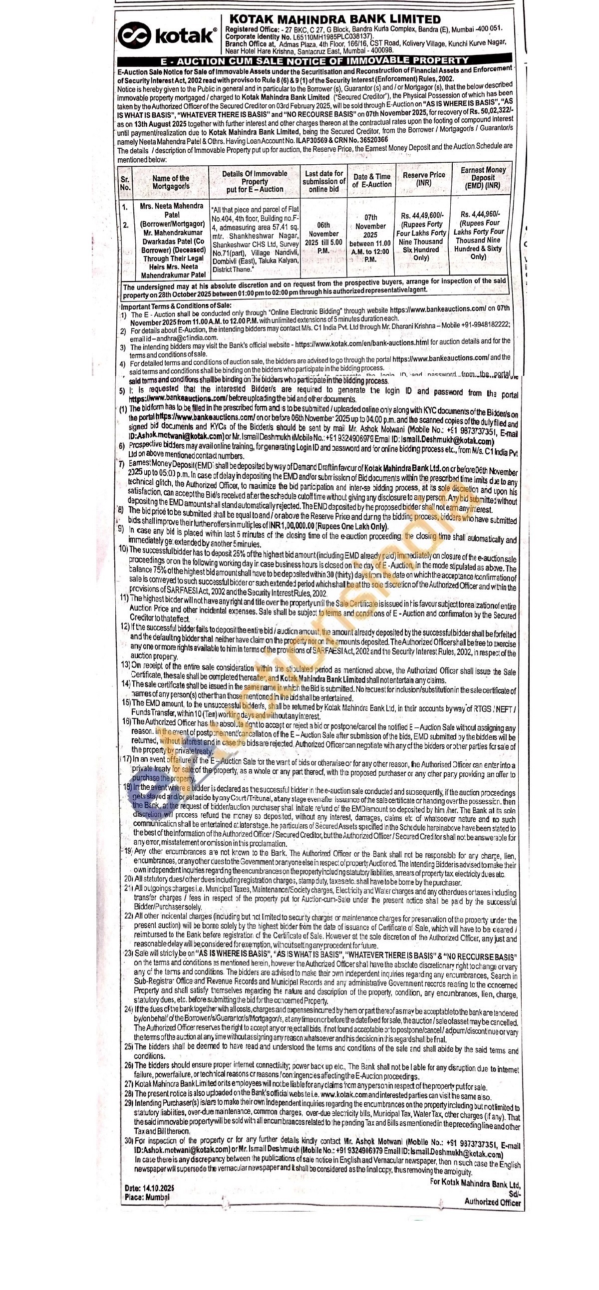 "All that piece and parcel of Flat No.404, 4th floor, Building no.F-4, admeasuring area 57.41 sq.mtr. Shankheshwar Nagar No.71(part), Village Nandivli, Dombivli (East), Taluka Kalyan, District Thane."