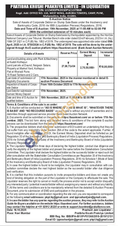 Land and building along with Plant & Machinery at Kadoli Kolhapur. Land parcels at Daund, Naigaon Satara. Property at Market Yard, Kolhapur Flat at Kharadi Pune. 10 Road Tankers and 2 Cars
