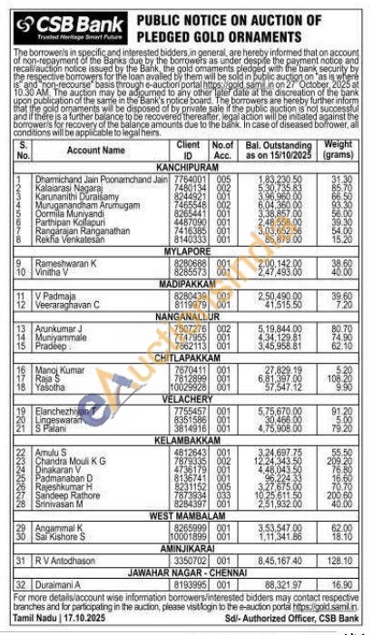 CSB Bank Gold Auctions Auction in Kanchipuram