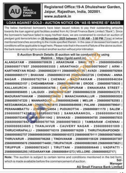 AU Small Finance Bank Gold Auctions Auction in Chidambaram