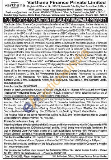 Details of immovable Property: Al that piece and parcel of the Immovable property bearing Sy No. 111/5 an extent of Ac. 031 cents, Open Site in ward No. 11. Stuated at Kotabhavi Street, With Kodumur Gram Panchayath Limits, Kodumur Village and Mandal, Kurnool District, Kodumur Sub Registration with in following Boundary walls as under- East by: Site of Selty Lingappa and Rasta, West by: Site of A Raja Sekhar Reddy and others. North by: Sile of S. Mastan Basha South by: Site of S Mastan Basha