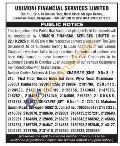 Unimoni Financial Services Limited Gold Auctions Auction in Khammam