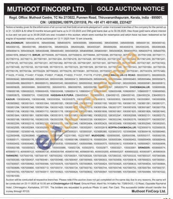 Muthoot Fincorp Ltd Gold Auctions Auction in Hassan