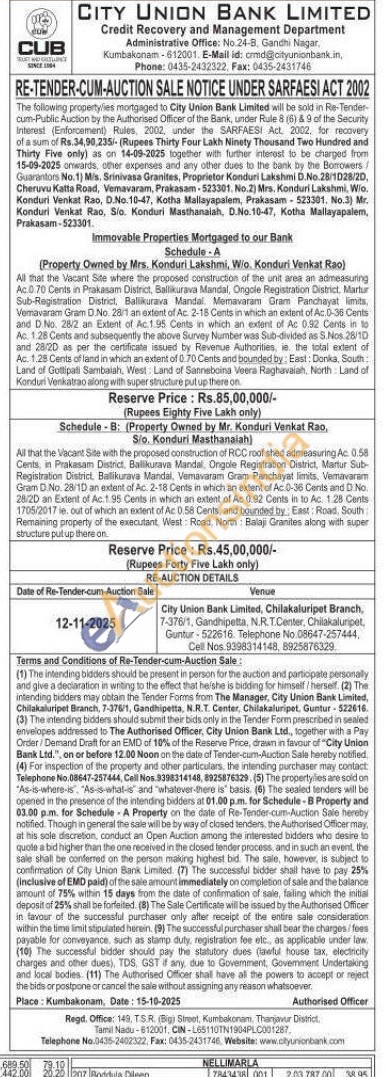All that the Vacant Site where the proposed construction of the unit area an admeasuring Ac.0.70 Cents in Prakasam District, Ballikurava Mandal, Ongole Registration District, Martur Sub-Registration District, Ballikurava Mandal. Memavaram Gram Panchayat limits, Vermavaram Gram D.No. 28/1 an extent of Ac. 2-18 Cents in which an extent of Ac. 0-36 Cents and D.No. 28/2 an Extent of Ac.1.95 Cents in which an extent of Ac 0.92 Cents in to Ac. 1.28 Cents and subsequently the above Survey Number was Sub-divided as S.Nos. 28/10 and 28/2D as per the certificate issued by Revenue Authorities, ie, the total extent of Ac. 1.28 Cents of land in which an extent of 0.70 Cents and bounded by: East: Donka, South: Land of Gottlipati Sambalah, West: Land of Sanneboina Veera Raghavaiah, North: Land of Konduri Venkatrao along with super structure put up there on.