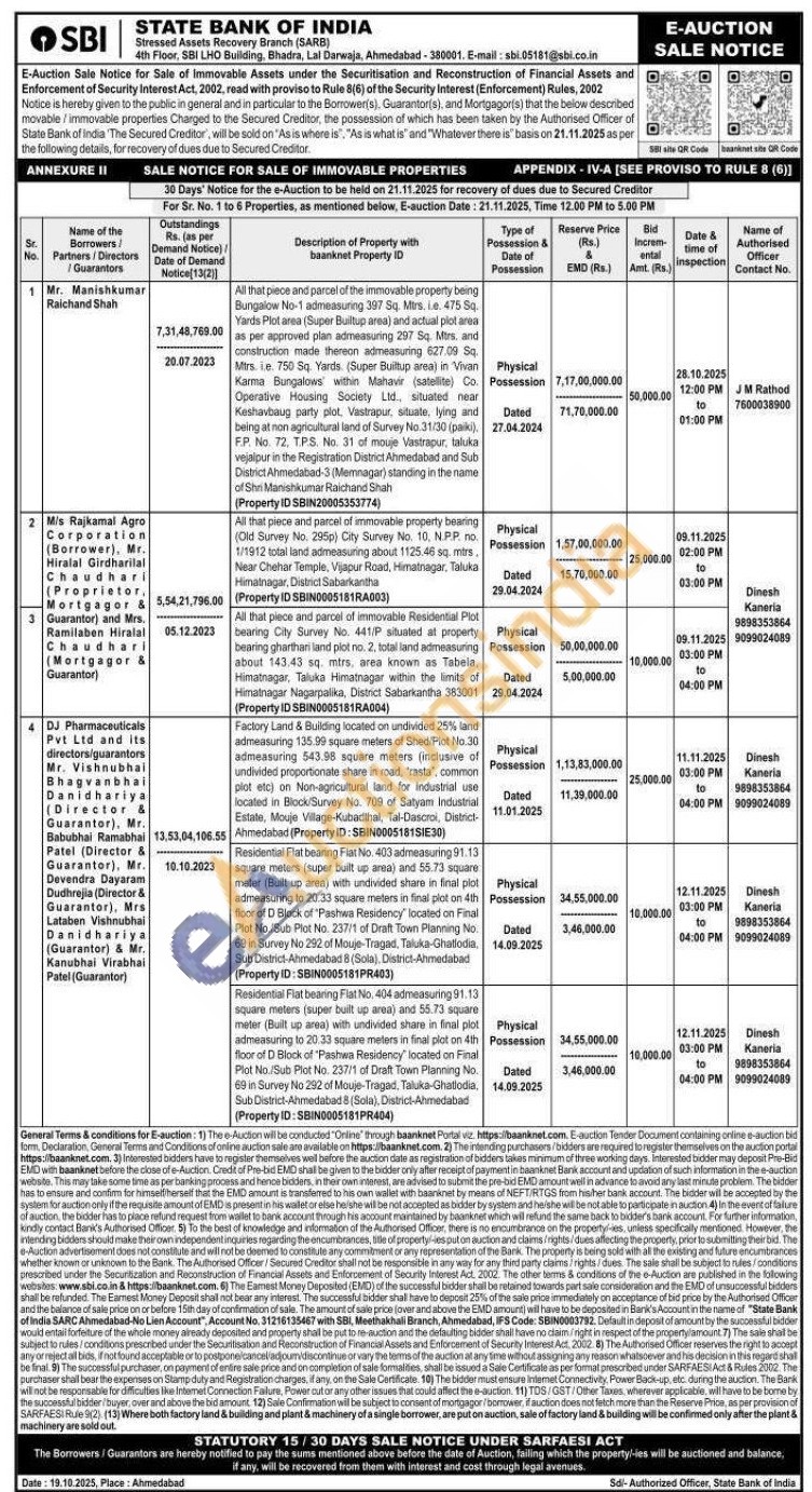 All that piece and parcel of immovable Residential Plot bearing City Survey No. 441/P situated at property bearing gharthari land plot no. 2, total land admeasuring about 143.43 sq. mtrs, area known as Tabela, Himatnagar, Taluka Himatnagar within the limits of Himatnagar Nagarpalika, District Sabarkantha 383001 (Property ID SBIN0005181RA004)