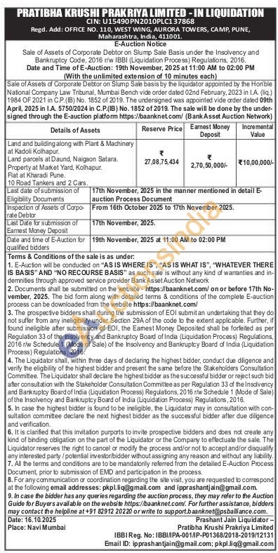 Land and building along with Plant & Machinery at Kadoli Kolhapur Land parcels at Daund, Naigaon Satara. Property at Market Yard, Kolhapur. Flat at Kharadi Pune.
