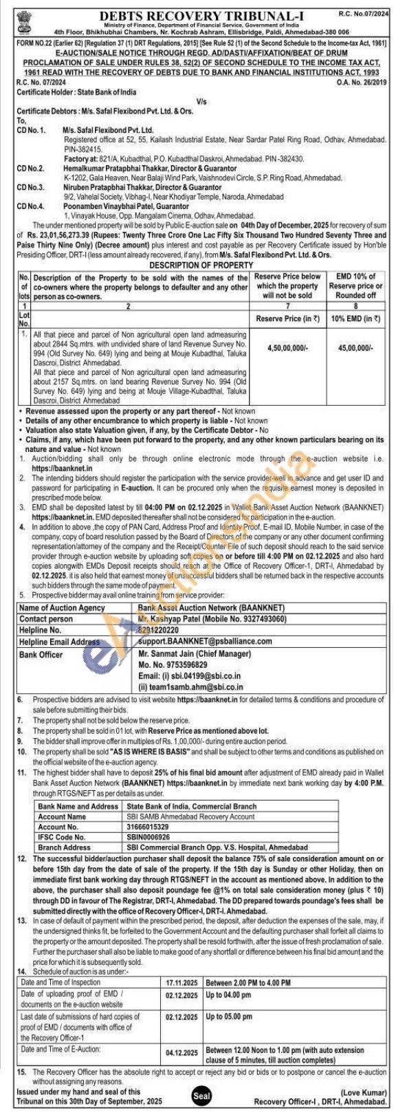 Non agnricultural open land measuring about 2844 Sqmts with undivided share of land Revenue Survey No 934 (Did Survey No: 641) lying and being at Mouje Kutadhal Taluka Dascroi, District Ahmedabad Al that piece and parcel of Non agricultural open and admeasuring about 2157 50 nas. on land bearing Ravenue Survey No. 964 ( Survey No. 643) lying and being at Mouge Village-Kabadhal Tauka Desco District Ahmedabad