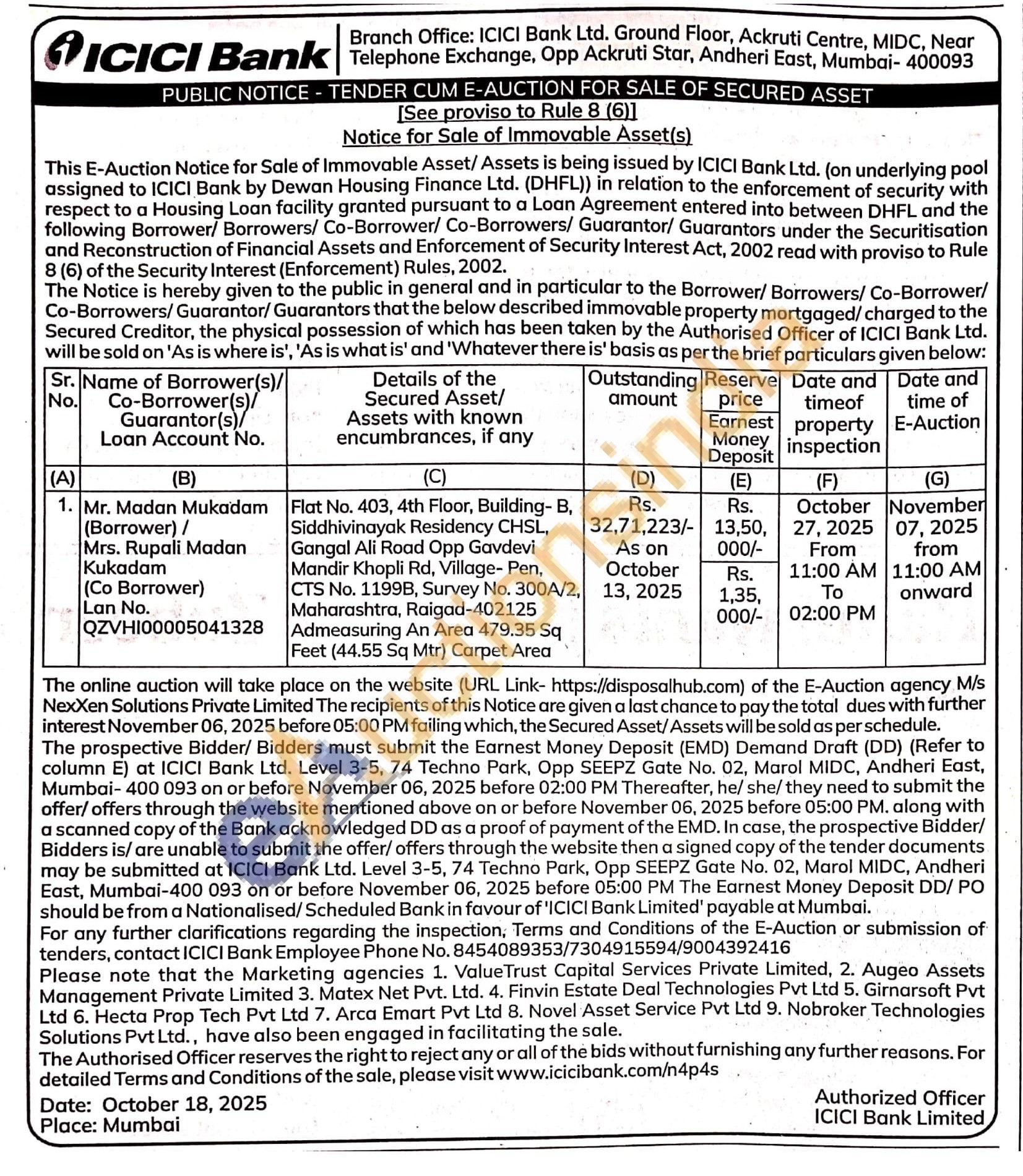 Flat No. 403, 4th Floor, Building- B, Siddhivinayak Residency CHSL, Gangal Ali Road Opp Gavdevi Mandir Khopli Rd, Village- Pen, CTS No. 1199B, Survey No. 300A/2, Maharashtra, Raigad-402125 Admeasuring An Area 479.35 Sq Feet (44.55 Sq Mtr) Carpet Area