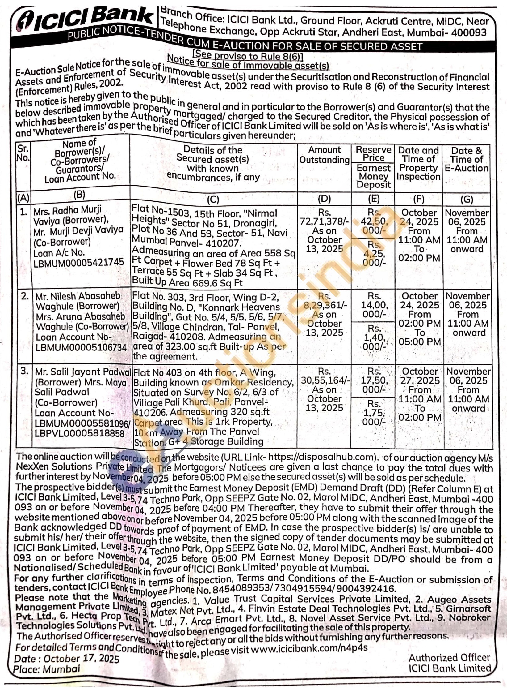 3) Flat No 403 on 4th floor, A Wing, Building known as Omkar Residency, Situated on Survey No. 6/2 6/3 of Village Pali Khurd, Pali, Panvel-410206. Admeasuring 320 sq.ft Carpet area This is 1rk Property, 10km Away From The Panvel Station. G + 4 Storage Building