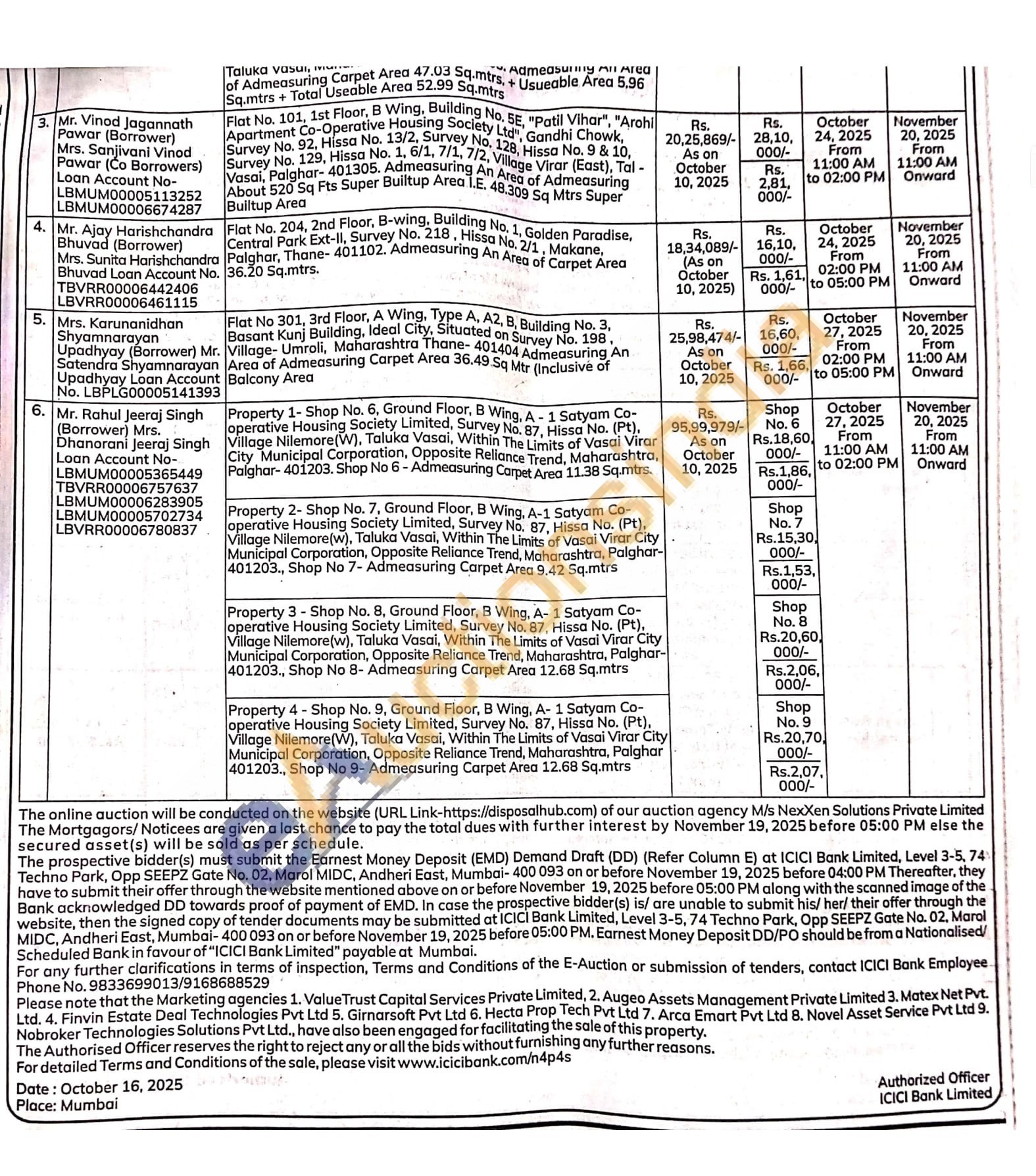4) Flat No. 204, 2nd Floor, B-wing, Building No. 1, Golden Paradise, Central Park Ext-II, Survey No. 218, Hissa No. 2/1, Makane, Palghar, Thane-401102. Admeasuring An Area of Carpet Area 36.20 Sq.mtrs.