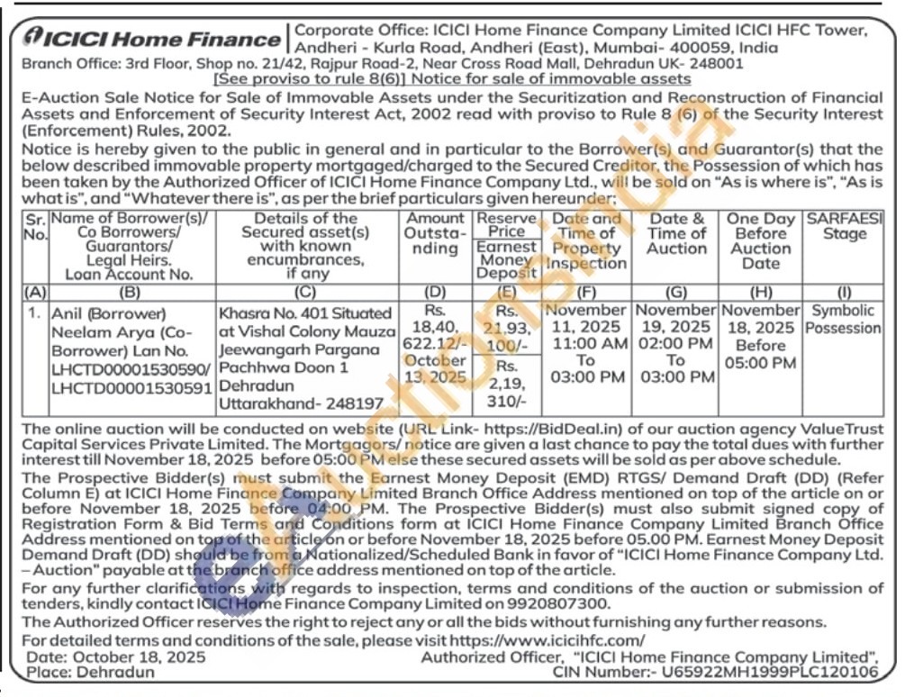 Khasra No. 401 Situated at Vishal Colony Mauza Jeewangarh Pargana Pachhwa Doon 1 Dehradun Uttarakhand