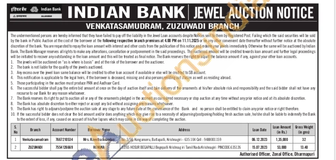 Indian Bank Gold Auctions Auction in Visakhapatnam