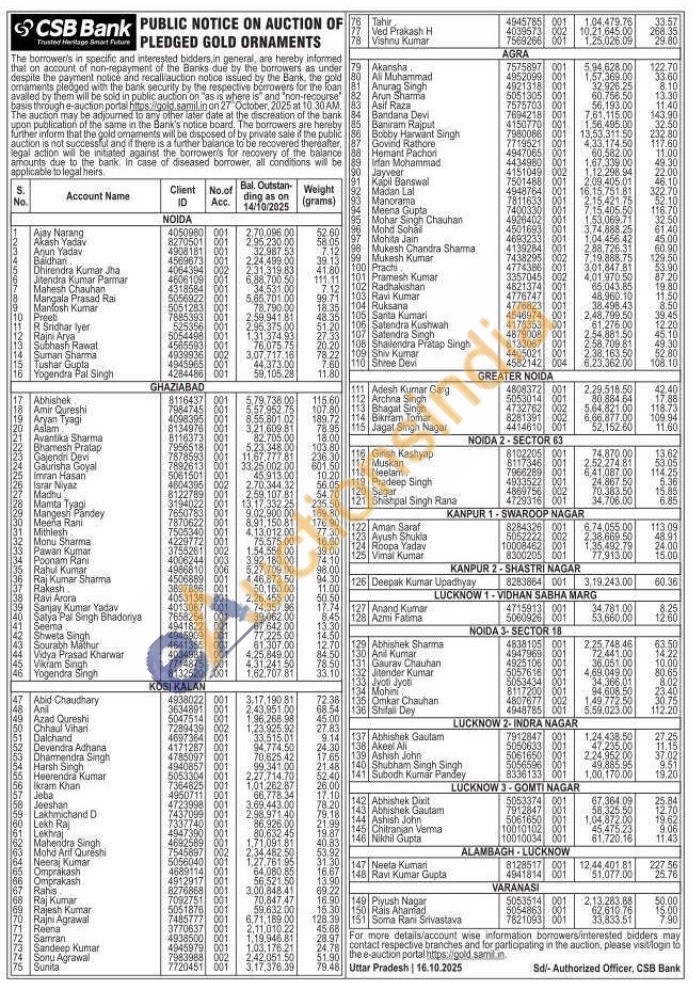 CSB Bank Gold Auctions Auction in Shimla