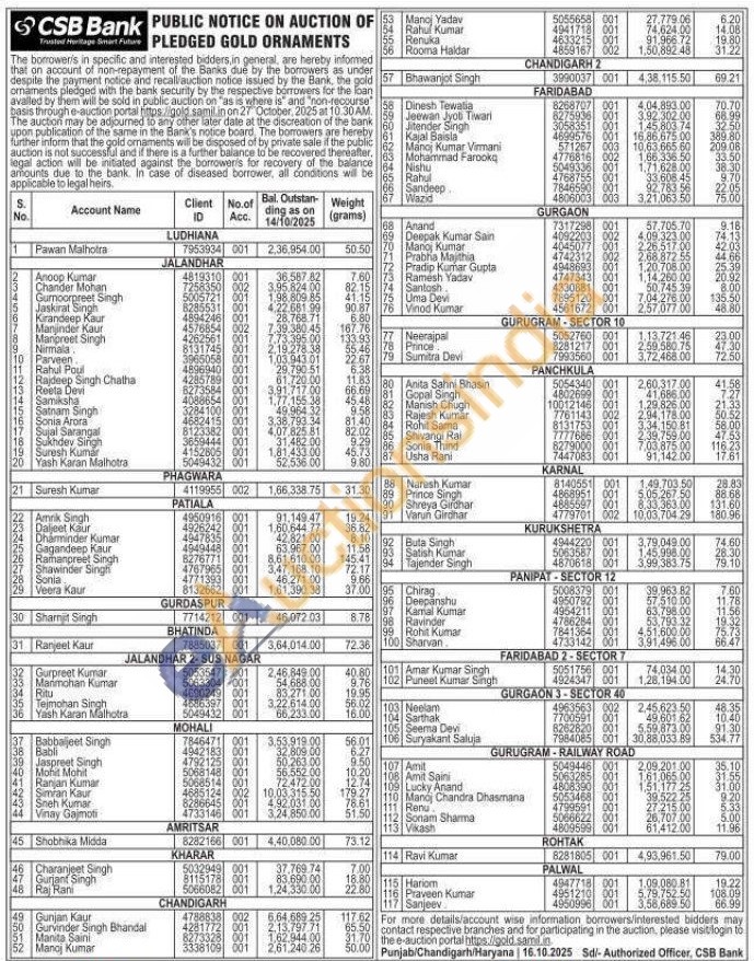 CSB Bank Gold Auctions Auction in Shimla