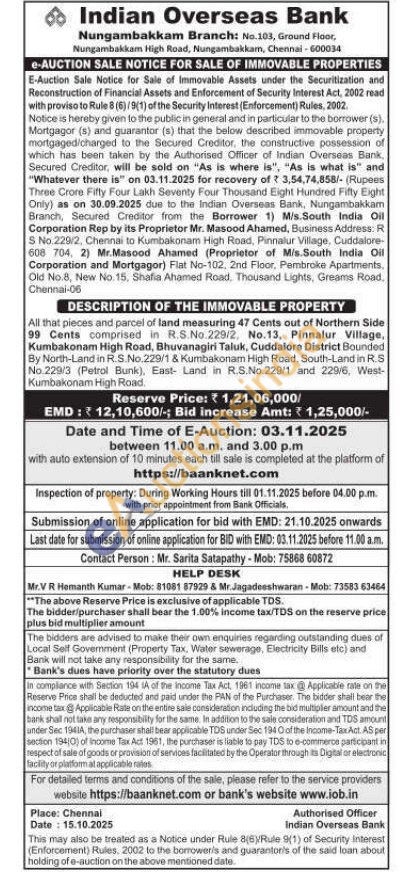 All that pieces and parcel of land measuring 47 Cents out of Northern Side 99 Cents comprised in R.S. No.229/2, No.13, Pinnalur Village, Kumbakonam High Road, Bhuvanagiri Taluk, Cuddalore District Bounded By North-Land in R.S.No.229/1 & Kumbakonam High Road. South-Land in R.S No.229/3 (Petrol Bunk), East Land in R.S.No.229/1 and 229/6, West-Kumbakonam High Road.
