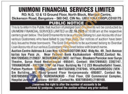 Unimoni Financial Services Limited Gold Auctions Auction in Bengaluru
