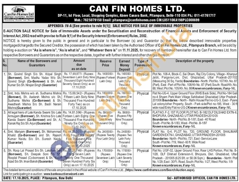 FLAT No. G-4, PLOT No. 720, GROUND FLOOR, SHALIMAR GARDEN EXTN-I, GHAZIABAD, UTTAR PRADESH-201005 Boundaries-North-Plot No. 721, East-Service Lane South-Plot No. 719, West-60 ft. Wide Road Known encumbrances, if any-NIL