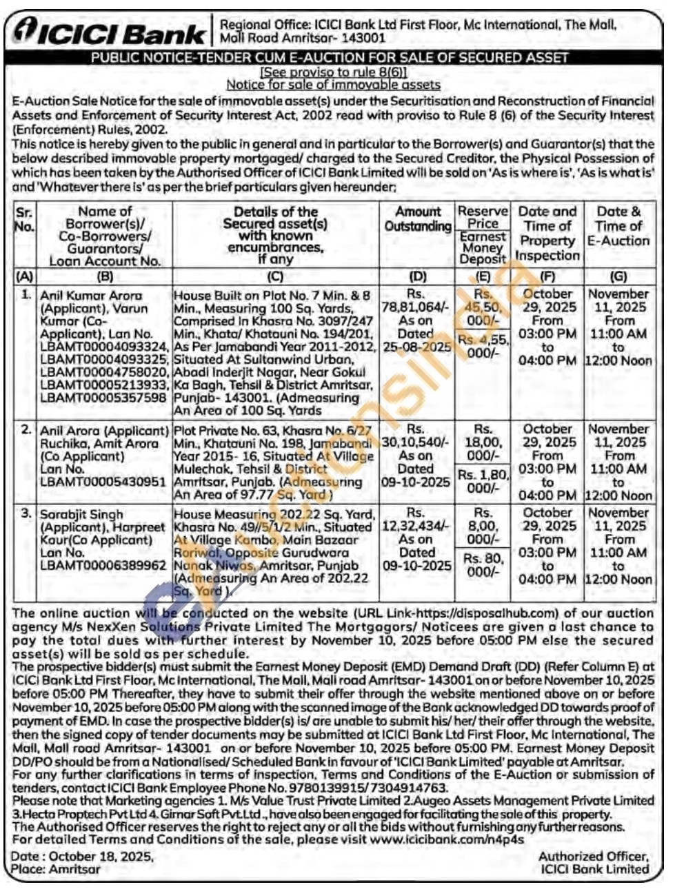 Plot Private No. 63, Khasra No. 6/27 Min., Khatauni No. 198, Jamabandi Year 2015-16, Situated At Village Mulechak, Tehsil & District Amritsar, Punjab. (Admeasuring An Area of 97.77 Sq. Yard)