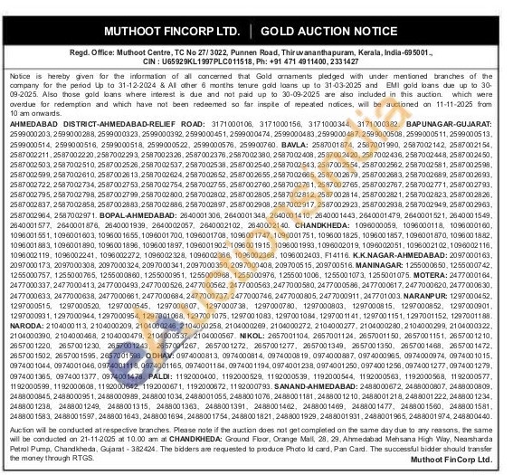 Muthoot Fincorp Ltd Gold Auctions Auction in Ahmedabad