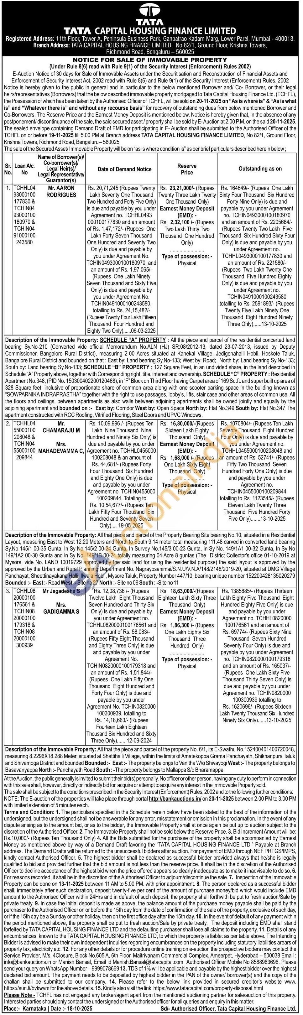 Description of the Immovable Property: All that piece and parcel of the Property Bearing Site bearing No. 10, situated in a Residential Layout, measuring East to West 12.20 Meters and North to South 9.14 meter total measuring 111.48 carved in converted land bearing Sy No 145/1 00-35 Gunta, In Sy No. 145/2 00-24 Gunta, In Survey No. 145/3 00-23 Gunta, In Sy No. 149/1A1 00-32 Gunta, In Sy No 149/1A2 00-30 Gunta and in Sy No. 149/18 00-24 totally measuring 04 Acre 8 guntas (The District Collector's office 01-10-2019 at Mysore, vide No. LAND 10019729 approved by the said land for using the residential purpose) the said layout is approved by the approved by the Urban and Rural Planning Department No. Nagrayosanimai/S.N.U/V.N.A/148/2148/2019-20, situated at DMG Village Panchayat, Sheettinayakana Halli, Ilwala Hobli, Mysore Taluk, Property Number 447/10, bearing unique number 152200428135020279 Bounded:- East:-Road West:-Site no 27 North: Site no 09 South: -Site no 11
