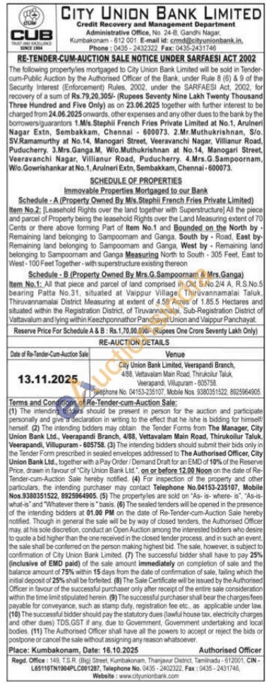 Telephone No : 04153-235107 / Cell Nos : 9380351522 / 8925964905