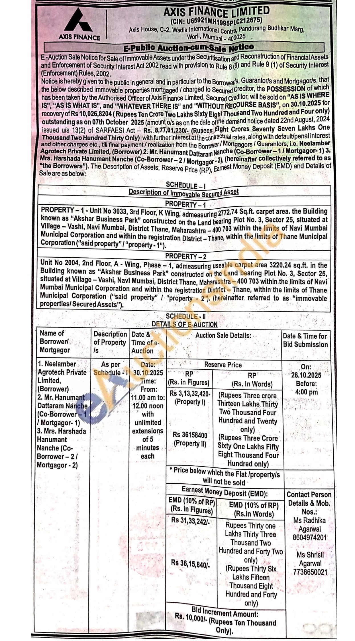 Contact Person Detalls & Mob. Nos.: Ms Radhika Agarwal 8604974201 Ms Shristi Agarwal 7738650021