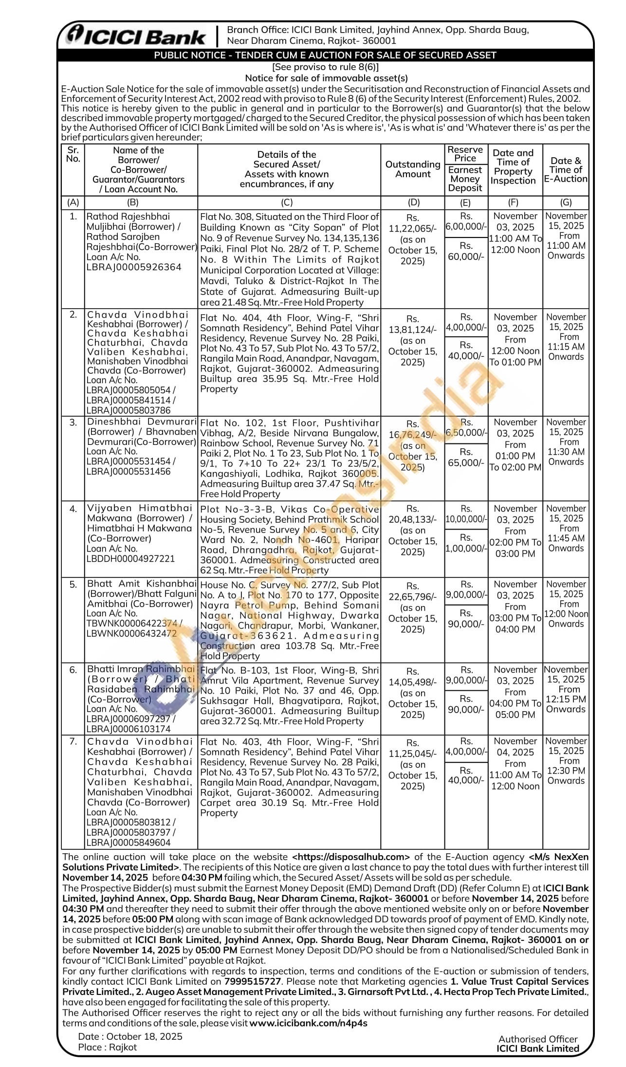 Flat No. 308, Situated on the Third Floor of Building Known as "City Sopan" of Plot No. 9 of Revenue Survey No. 134,135,136 Paiki, Final Plot No. 28/2 of T. P. Scheme No. 8 Within The Limits of Rajkot Municipal Corporation Located at Village: Mavdi. Taluko & District-Rajkot In The State of Gujarat. Admeasuring Built-up area 21.48 Sq. Mtr.-Free Hold Property