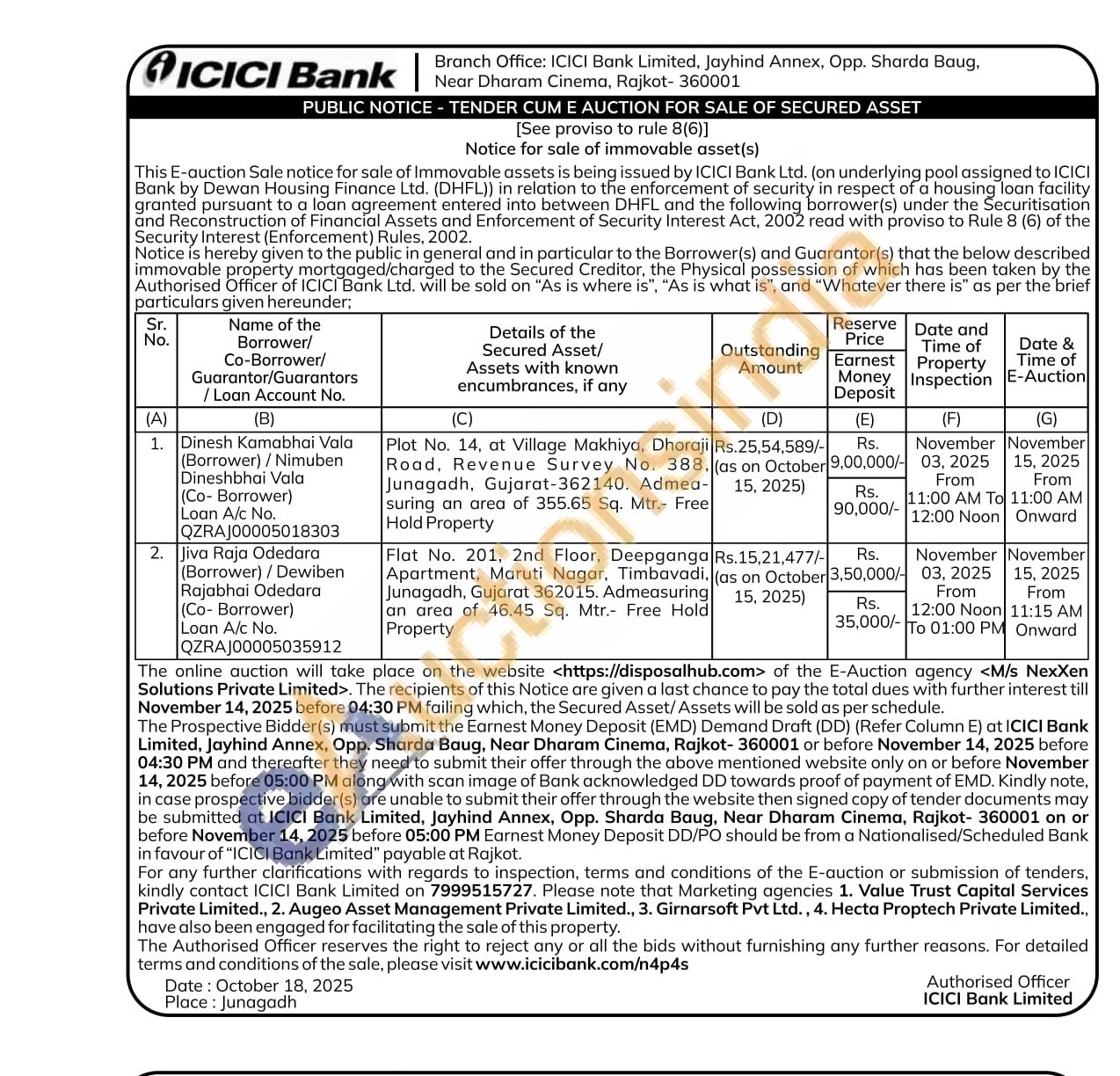 Plot No. 14, at Village Makhiya, Dhoraji Road, Revenue Survey No. 388. Junagadh, Gujarat-362140. Admea-suring an area of 355.65 Sq. Mtr.- Free Hold Property