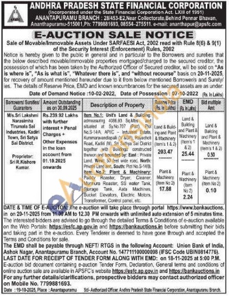 Bem No.1: Unit's Land & Building: admeasuring 4006.93 Sq.Altis and situated at SyNo.707 (Part), Plot No.S-14A, APIC Industrial Estate, Kummanavandlapalli (V &GP), Rayachict Road, Kadiri(M), Sn Sathya Sai District together with Buildings constructed thereon and bounded by: East: Privaατα Land, West: 50 feel wide road. North: Private Land ant, South: Plot No.S-148