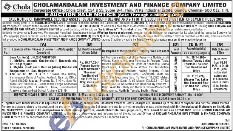 All That piece and parcel of site Property at Gud denahalli Village, Kondenalu Gram PanchayathArikere Taluk Panchayath, Arsikere Taluk Within the Jurisdiction of Sub registrar, Arsikere, Having Property ID No 151600201200900049,Grama Panchayath khata No 31/2 Site Measuring East To West 8.8392 Metres and North To South 7, 62 Meters (08.8392 07.62) Metres =67.35 Sq Metres and Bounded By East By:-Road, West By: Gully and thereafter house Property of Renukamma, North By Temple, South :- Road.