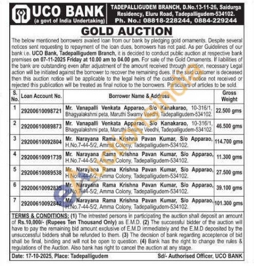 UCO Bank Gold Auctions Auction in Eluru