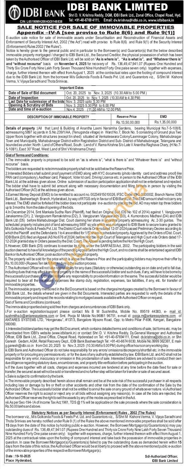 All that land and builidng of Anantha Laxmi Narsimha Gardens, bearing Municipal No.7-5-108/8, admeasuring 5897 sq yards in S.No.239/1/AA, (Yenugonda village) in Ward No.7, Block No. 5 consisting of Ground plus Two Upper floors together with structures (except tin shed) situated at Venkateswara Colony/Laxminagar Colony, Mahabubnagar Town and Municipality, Mahabubnagar District within Registration District and Sub-District of Mahabubnagar, Telangana